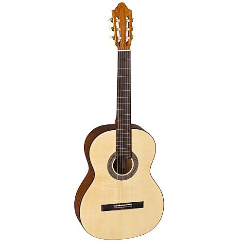 Die massive schweizer Fichtendecke sorgt für einen dynamischen, klaren Ton mit viel Ausdruck. Boden und Zargen aus Mahagoni verleihen der Gitarre einen warmen, vollen Klangcharakter. Der Cedro-Hals mit Palisander-Verstärkung liegt angenehm in der Hand und bietet hohe Stabilität. Griffbrett und Steg aus ostindischem Palisander ergänzen das edle Gesamtbild.