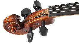 Für Korpus, Boden und Zargen wird ausschließlich massiver europäischer Ahorn verwendet. Der leicht geflammte Boden verleiht der Violine ein elegantes Erscheinungsbild. Die massive europäische Fichtendecke sorgt für hervorragende Resonanz und ein klares, tragfähiges Klangbild.