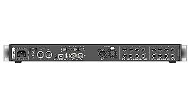 Vier XLR/TRS-Kombibuchsen für Mikrofon-, Instrumenten- und Line-Signale auf der Frontseite, dazu zwei kraftvolle Kopfhörerausgänge mit bis zu +17 dBu für detailgetreues Monitoring. Auf der Rückseite findest du acht symmetrische Line-Ein- und Ausgänge, zwei optische ADAT-I/Os, AES/EBU, MIDI und Wordclock – ideal für jede Studio- oder Live-Konfiguration.