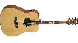 Der klassische Dreadnought-Korpus sorgt für einen kräftigen, ausgewogenen Sound mit satten Bässen und klaren Höhen. Das schlichte, moderne Design ohne überflüssige Details unterstreicht die natürliche Holzoptik und ist in zwei matten Farbvarianten erhältlich: Natural Satin und Smoky Black. Das ultradünne Polyurethan-Finish und die sorgfältig abgestimmte Beleistung ermöglichen eine hohe Resonanz und ein lebendiges Klangbild.